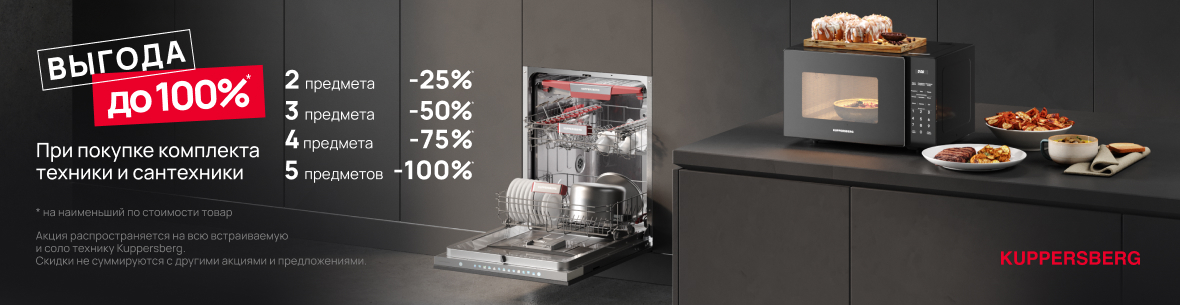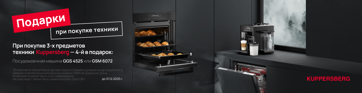 При покупке комплекта техники KRONA из 4 ед. на сумму от 110 000 руб. в розничных ценах – пятая единица Духовой шкаф в ПОДАРОК или посудомоечная машина с доплатой за расширенный функционал.